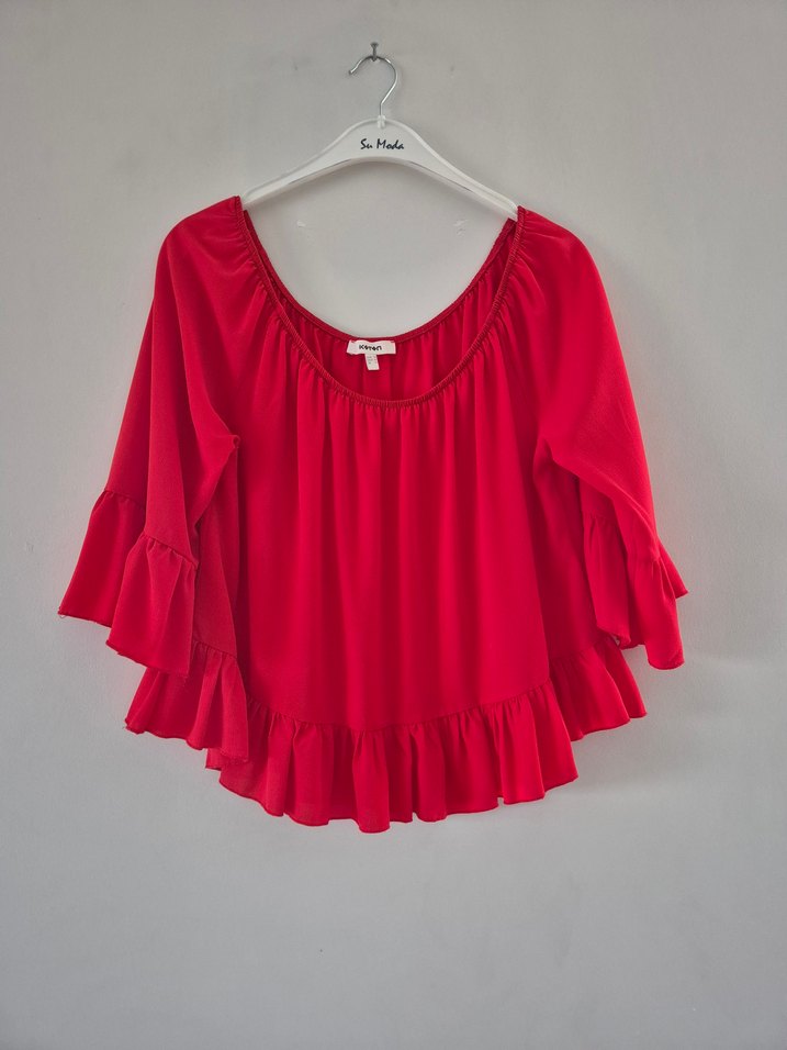 Koton Kırmızı Volanlı şifon üst 2 3 kere kullanıldı artık kullanmadığım için satıyorum kusursuzdur.