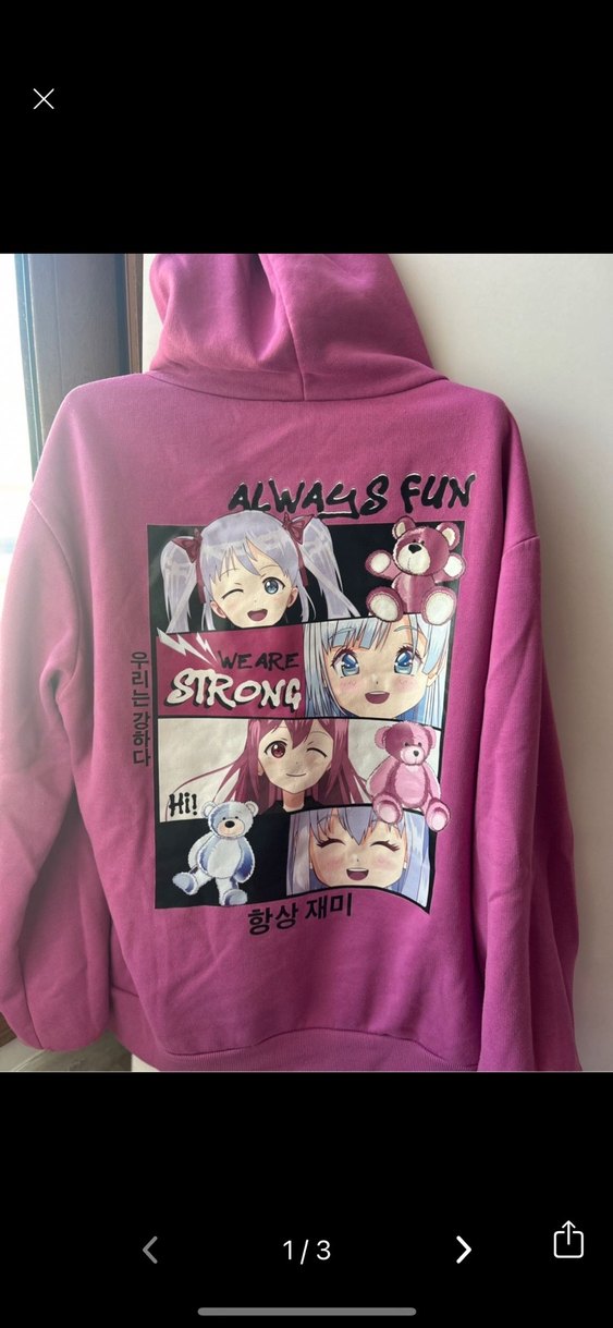 Pembe kapüşonlu sweatshirt, bol kesim ve uzun kollu, yumuşak sentetik kumaştan. Çizgi film karakterleri ve motive edici baskılar içerir. Trendy günlük kullanım için uygun.