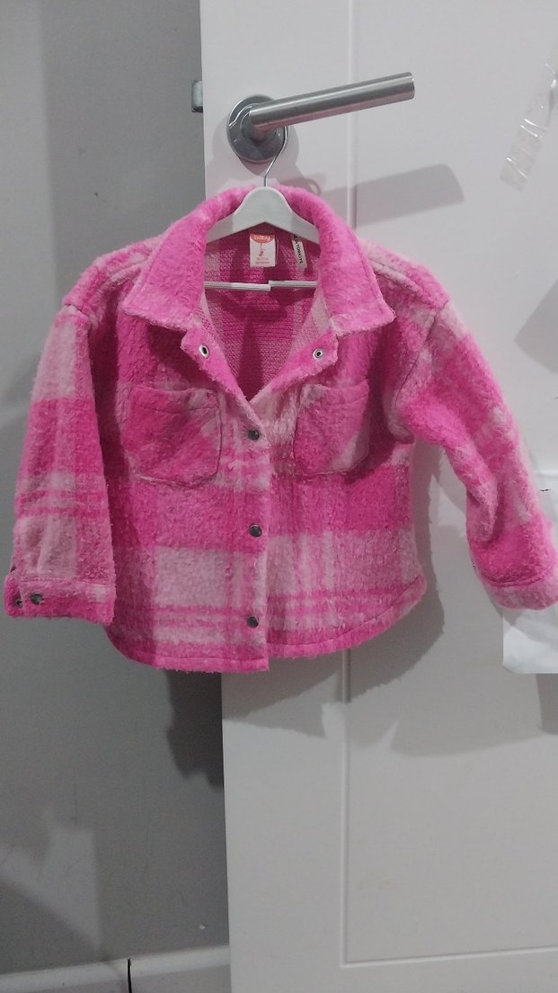Kız çocuklar için pembe oduncu gömlek, düğmeli ön, uzun kollu ve kesimli yakaya sahiptir. Gevşek kesim, pastel tonlardadir, trend sokak stili için uygundur.
