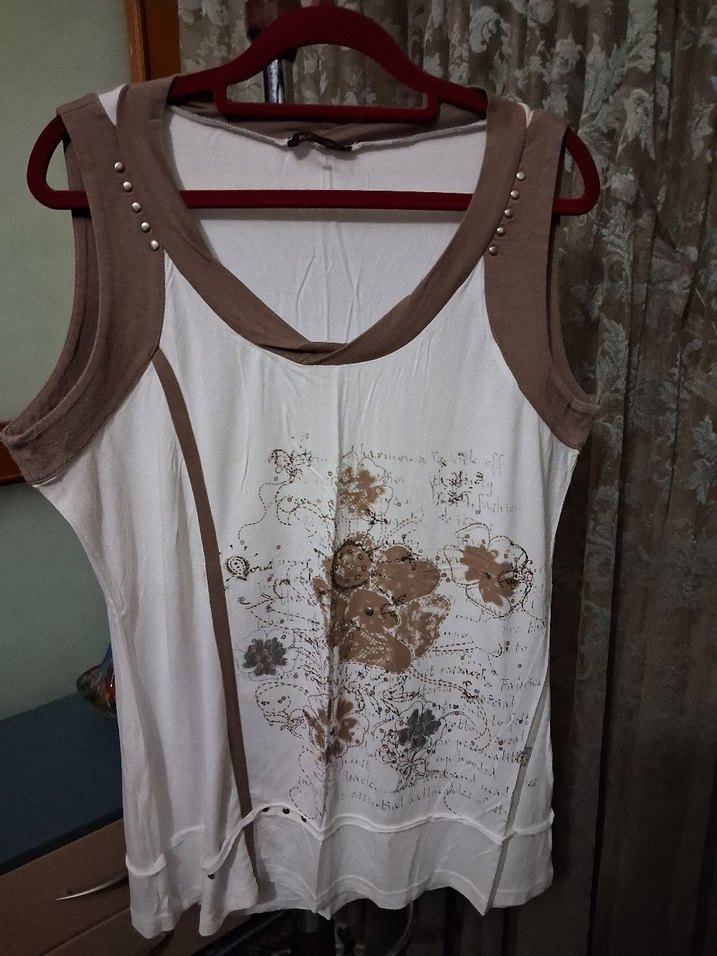 Koton, krem kahve,çiçek desenli, kolsuz tişört. Standart. Büyük, esnek.