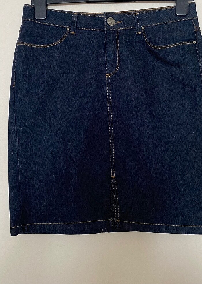 38 beden Koton lacivert kot etek diz boyu