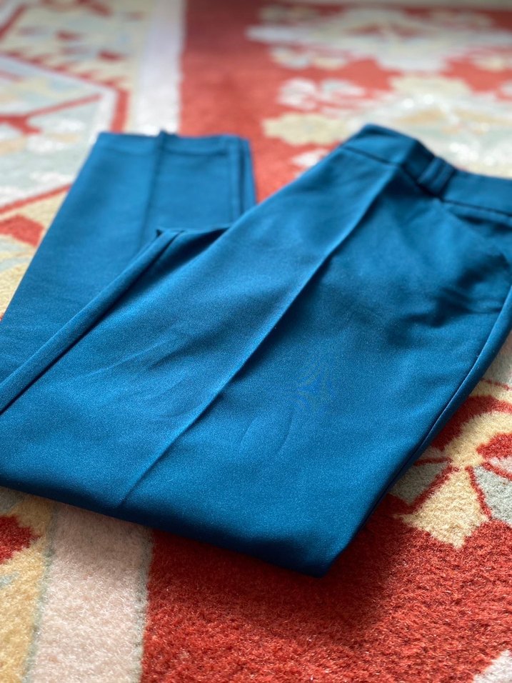 #koton marka petrol mavisi renk çift düğmeli boru paça önünde iki tane cebi bulunan boy uzunluğu:90 cm olan normal bel kumaş pantolon #koton #kumaş #pantolon #zara