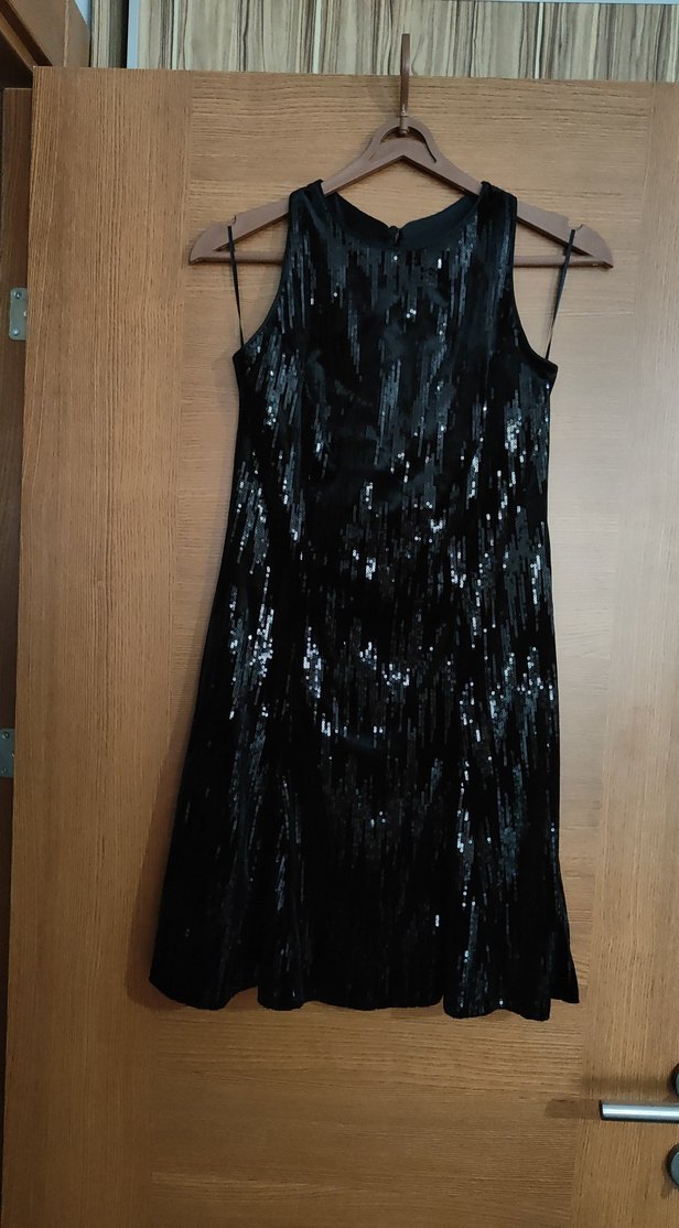 Koton M beden siyah pullu kısa abiye elbise