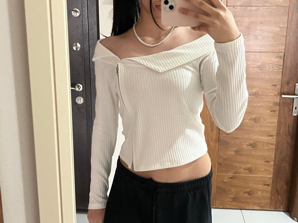 bedeni s m uyumlu alt tarafı hafiften salaş yakası çok acılıyor diye birkaç dikiş var fotoğrafta gözüküyor istemezseniz sokersiniz bir sorun olmaz