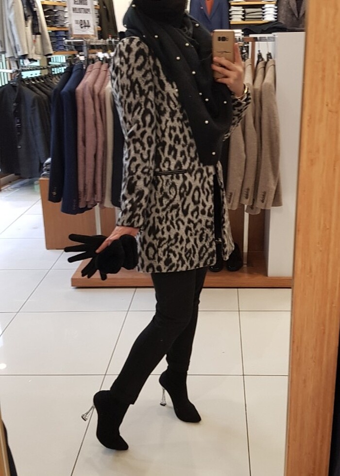 Siyah gri renkli leopar desenli koton marka kaşe 2 kere kullanıldı