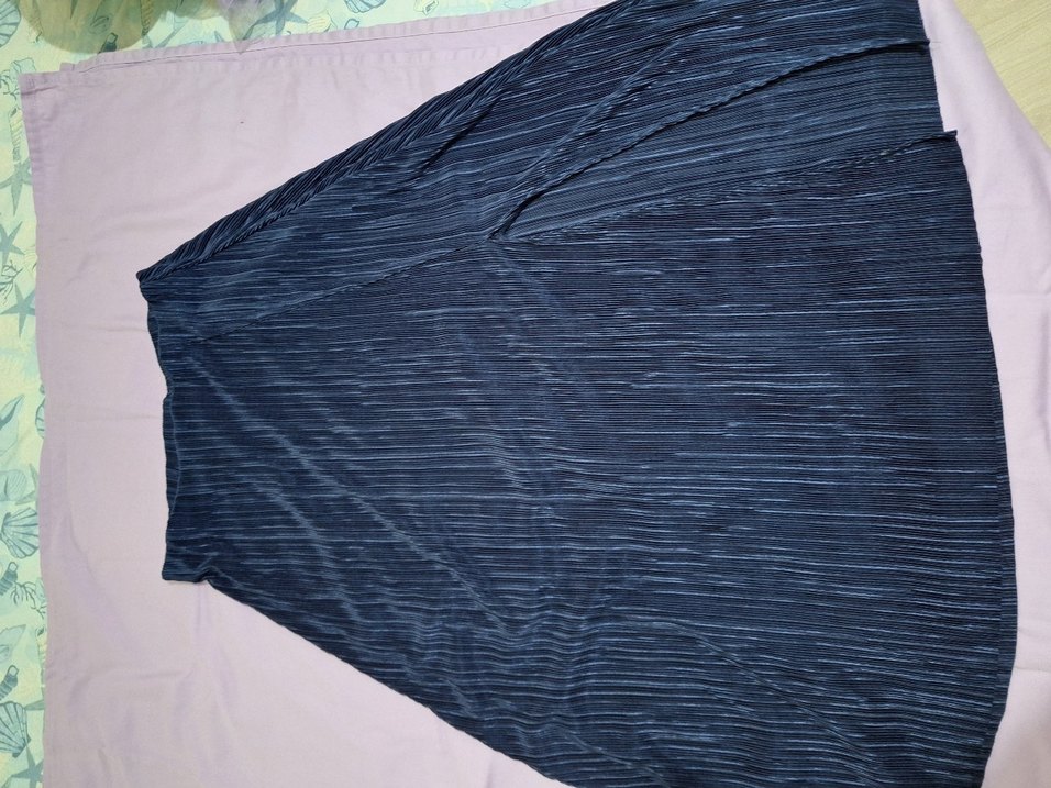 Esnek yırtmaçlı lacivert renk midi boy etek