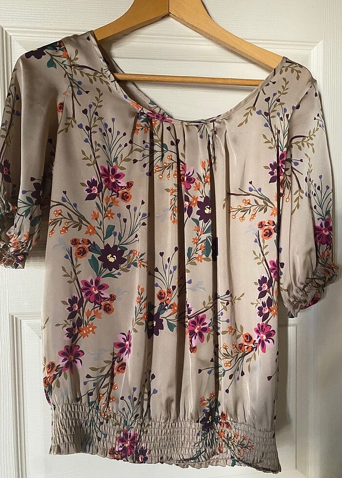 Temiz sorunsuz 1 kere giyildi cıvıl cıvıl çok şık bir bluz arka yaka kısmında bağcık vardır