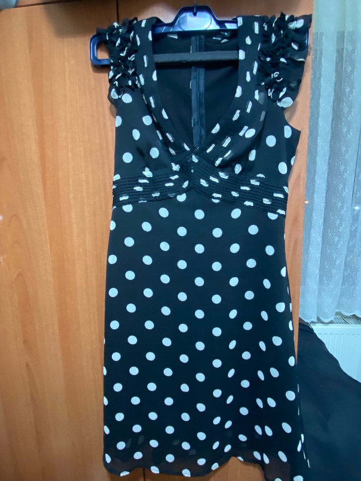 Koton marka Siyah Beyaz Puantiyeli V Yakalı Midi Elbise