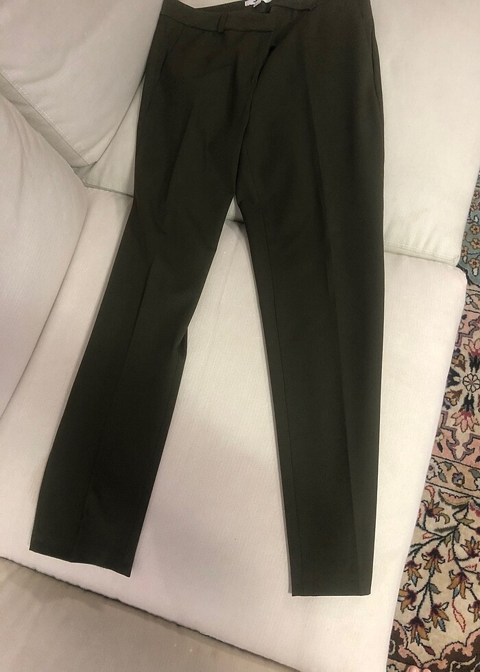 Hiç giyilmedi. Herhangi bir kusuru yoktur. Arka cepleri yoktur. İmalat esnasında ön düğme kısmını sökmeyi unutmuşlar. (Bizde aldıktan sonra farkettik). Koyu yeşil ve haki rengi arasında bir rengi var