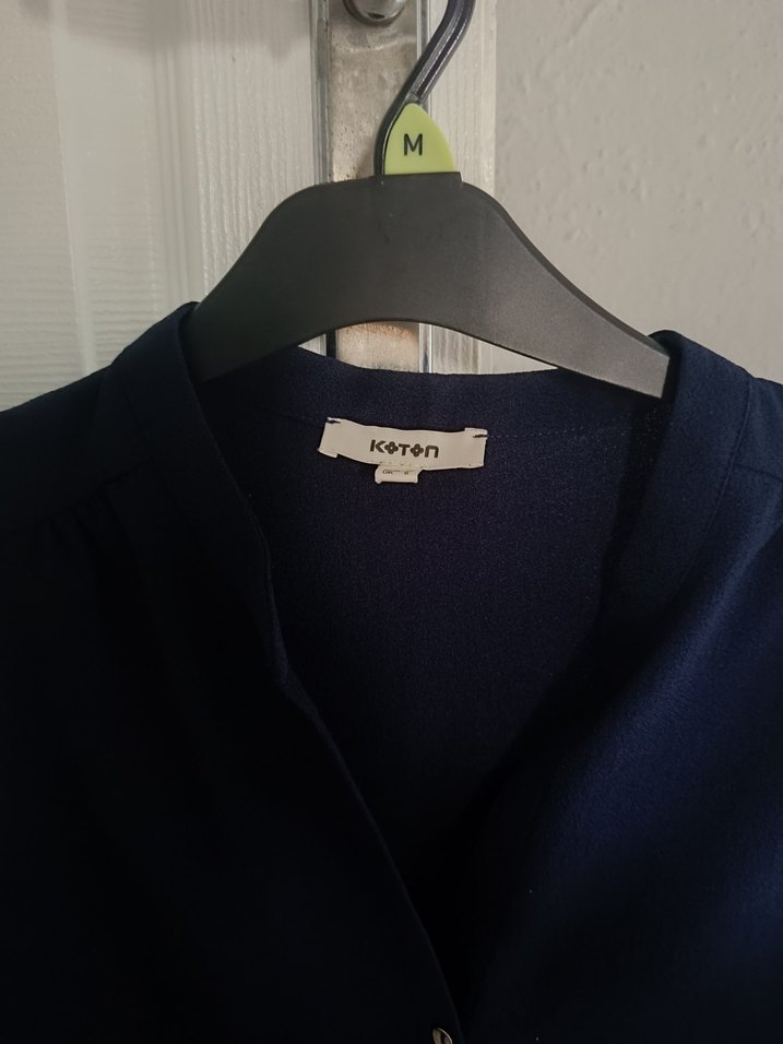 Koton'un mavi renkli, desenli, düğmeli hamile hırkası, uzun kollu ve V yakalıdır. Rahat kesimi ve yumuşak keten kumaşıyla günlük kullanıma uygundur.