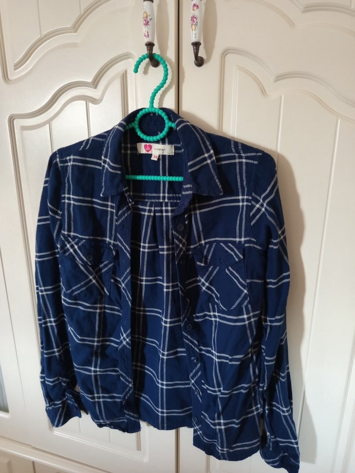Koton marka Mavi ekose kumaştan, düğmeli, uzun kollu ve notched lapel yakalı kadın gömlek. Rahat kesim ve normal midi boyda, günlük rahat kullanım için uygundur.