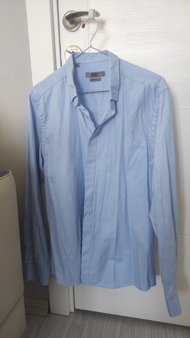 Mavi erkek gömlek, yakalı ve düğmeli ön yapıya sahiptir. Uzun kollu ve slim fit kesimlidir. Ofis ve günlük sokak stiline uygundur. Pastel ton trendi tamamlar. Ürün az kullanılmıştır herhangi bir deformesi yoktur. Sağlam ve temiz, M bedendir. Ölçüleri; boyu 72 cm, genişliği 51 cm, kol uzunluğu 65 cm'dir.