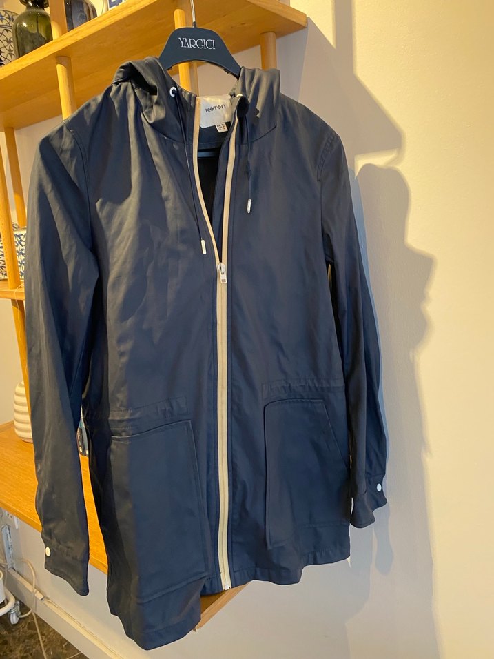 Koton Mavi Kapüşonlu Fermuarlı Yağmurluk