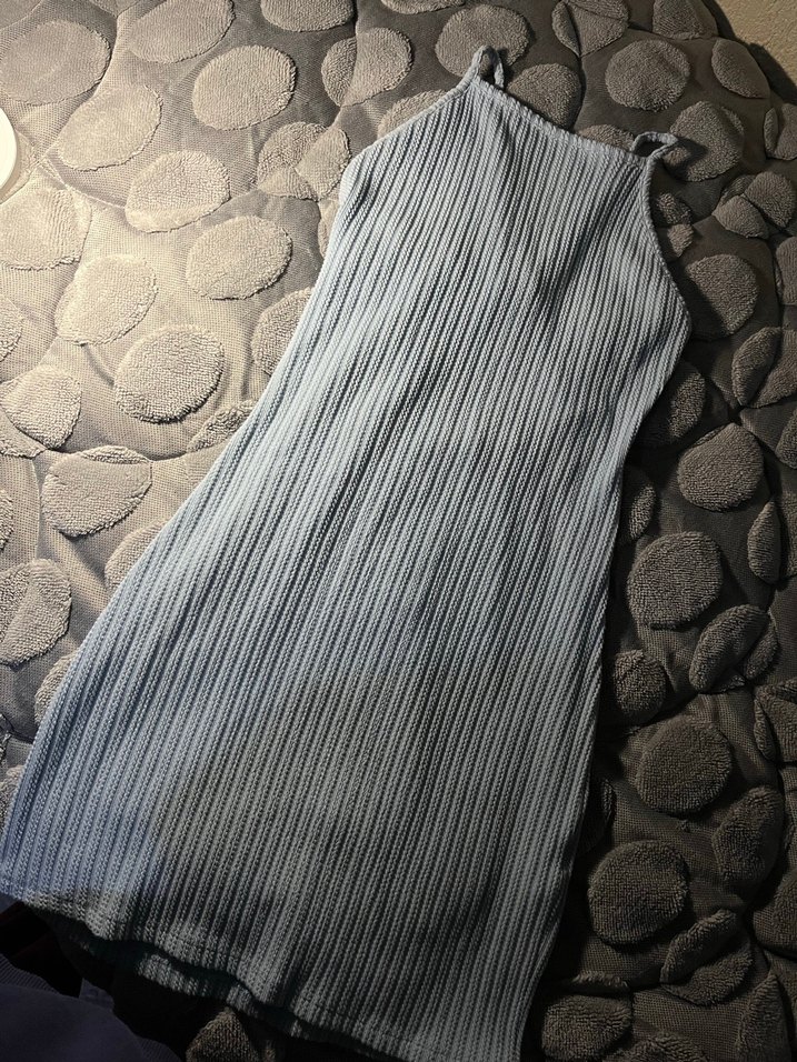 Mavi askılı sırt dekolteli elbise