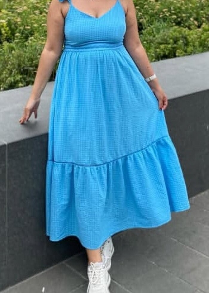 Koton mavi sırt detaylı elbise