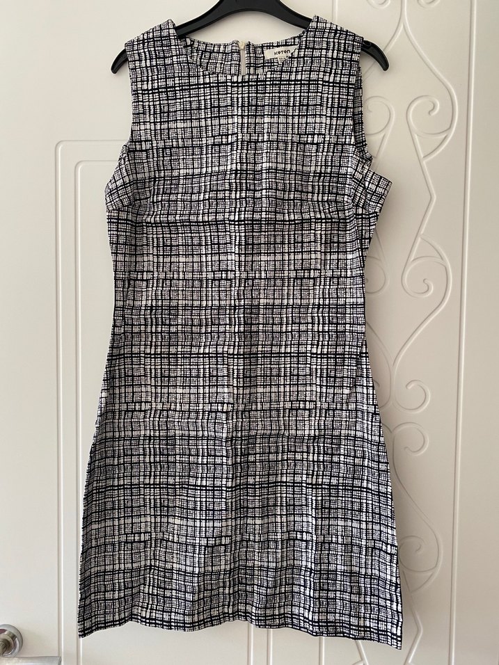 İş için uygun siyah beyaz sıfır kollu 38 beden
