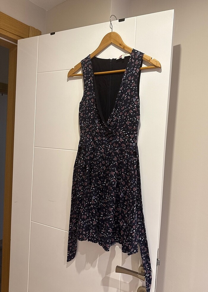 Beli kendinden bağlama kemerli mini elbise