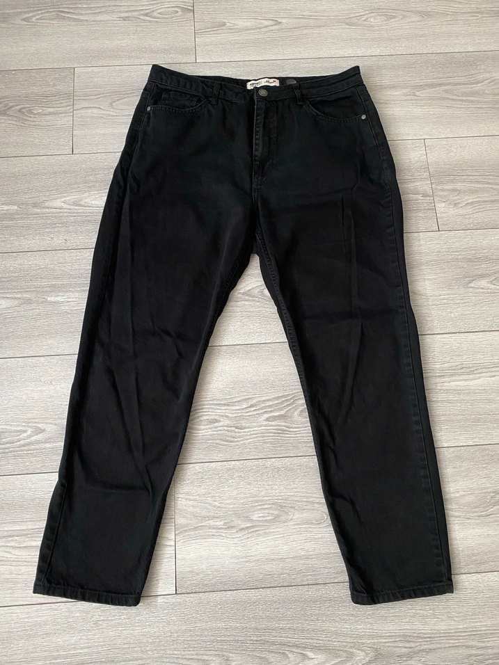 Koton marka Mom Jeans pantolon. Kalın jeans pantolon. Esnek değildir. Sorunu yok. Ölçü: Bel tek yön 40cm, boyu kemerden paça ucuna 95cm, iç bacak ölçüsü 64cm