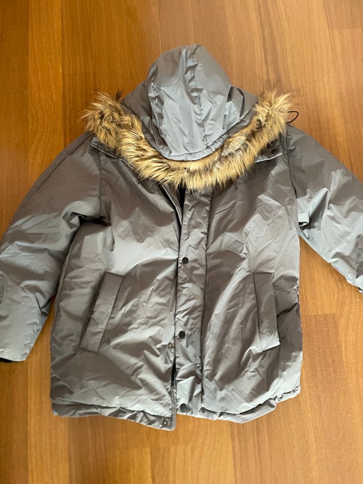 Hiç kullanılmadı nerdeyse dolapda duruyo öyle Gri renkli, sentetik kumaştan yapılmış, kürklü kapüşon detaylı ve uzun kollu erkek kışlık mont. Salaş kesimi ve normal boyuyla dış mekan için uygundur. ❄️