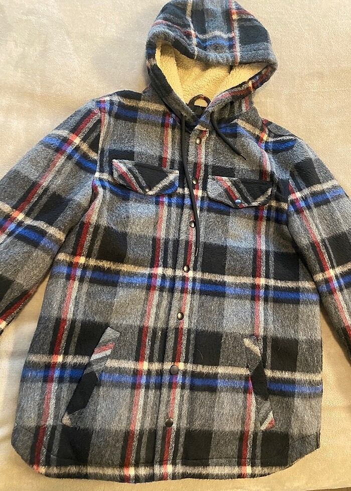 Kapüşonlu, içi elyaf dolgulu, oduncu gömlek mont