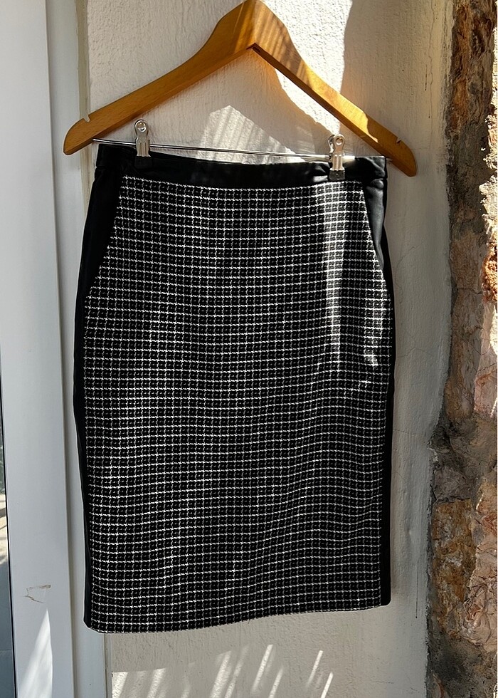 KOTON OFİS KALEM ETEK MİDİ DERİ ŞERİT DETAY