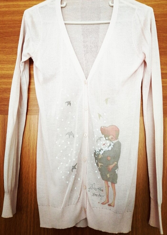 Koton Ole Nostalgia serisi, M beden işlemeli açık pembe, ince hırka.
