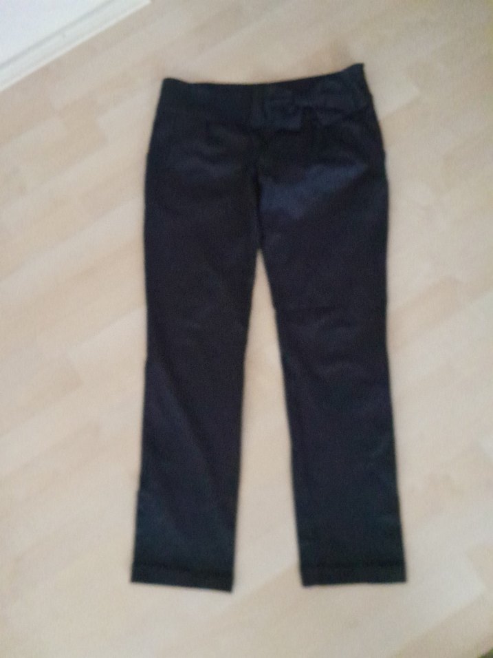 Lacivert renkte, normal boy midi kesim, regular fit kadın denim pantolon. Ofis için rahat ve şık, desen içermeyen koyu renk kumaş.