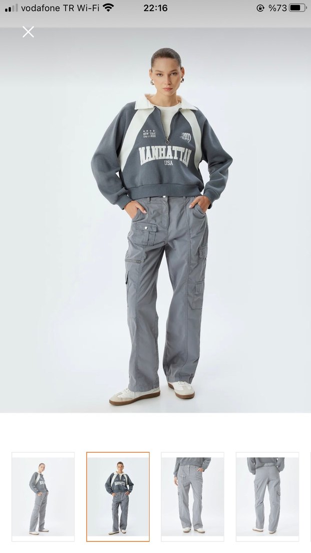 Gri renkli, rahat kesim, baskılı detaylara sahip kadın denim pantolon, günlük kullanım için zahmetsiz şıklık sunar. İki beden almıştım denemek için ikisi de olmadı bana. 40 ve 42 beden mevcut elimde.
