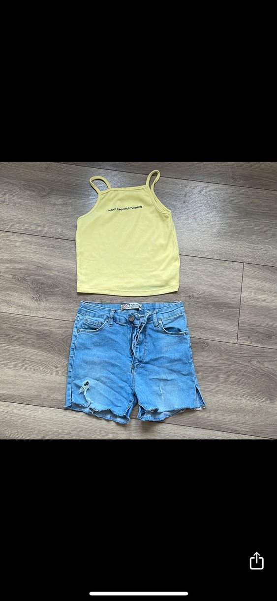 İkisini birlikte satıyorum. Şort 36 beden diyor ama biraz kalıbı dar. 32-34 bedene daha uygun. Likralı bir kumaşı var. Crop Koton marka penye bir kumaşı var. Etiketini rahatsız ettiği için sökmüştüm. O da 32-34 bedene uygun . En fazla 3-4 kez kullanıldılar. Hiçbir hasar yok. Merak ettiklerinizi sormaktan çekinmeyin lütfen