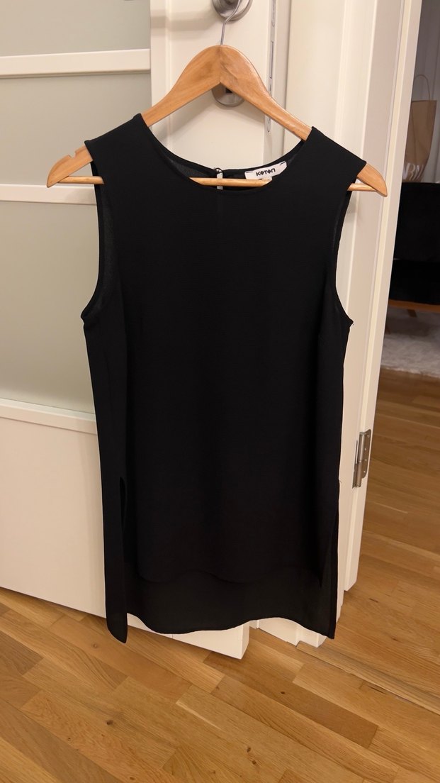 Kolsuz, yuvarlak yaka siyah kadın bluz, minimal ve zahmetsiz şıklık sunar. Yenidir hiç kullanıldmadı.