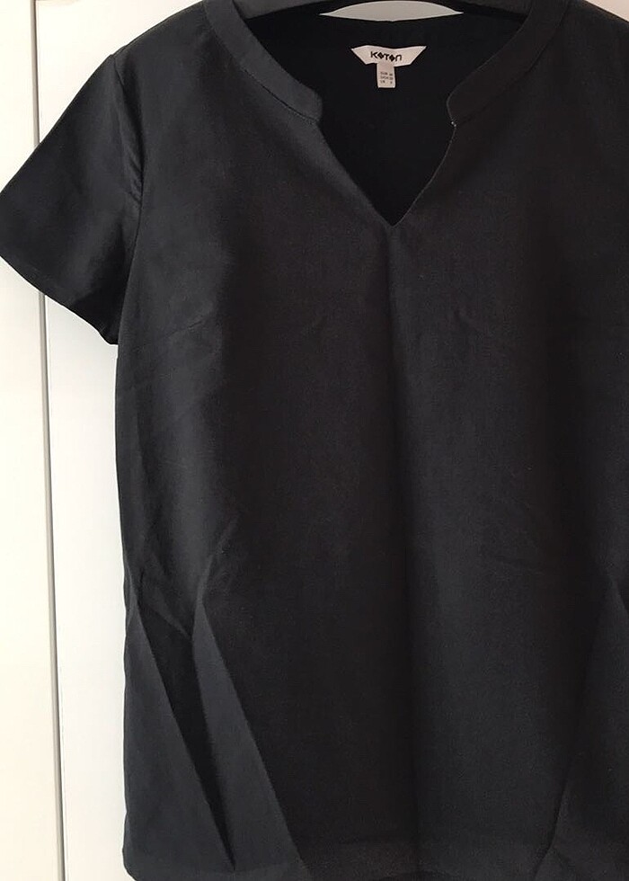 34 beden, sadece bir defa giydim. Hiçbir deformasyonu yok. V yaka, şifon t-shirt #koton #tshirt #siyah