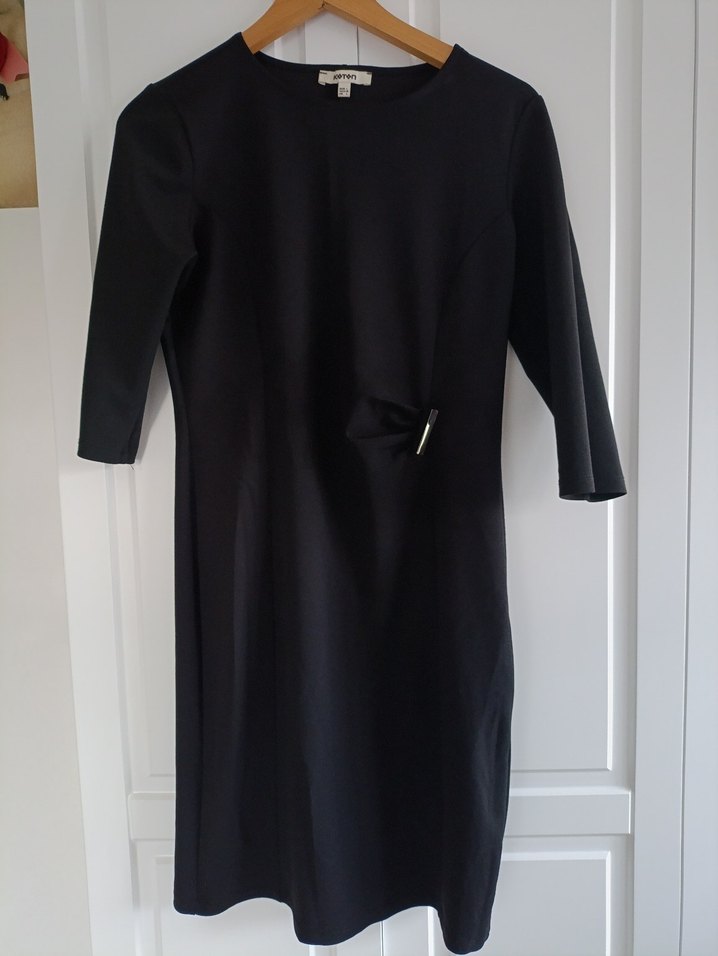 Orjinal Koton markalı, belinde şık bir detayı vardır, siyah, uzun kollu şık bir elbise. Ofis ve şık ortamlar için uygundur. Hiç giyilmemiş. Herhangi bir sorunu yoktur. Elbisenin beli 40 cm, uzunluğu 93 cm'dir. M-38 bedendir.