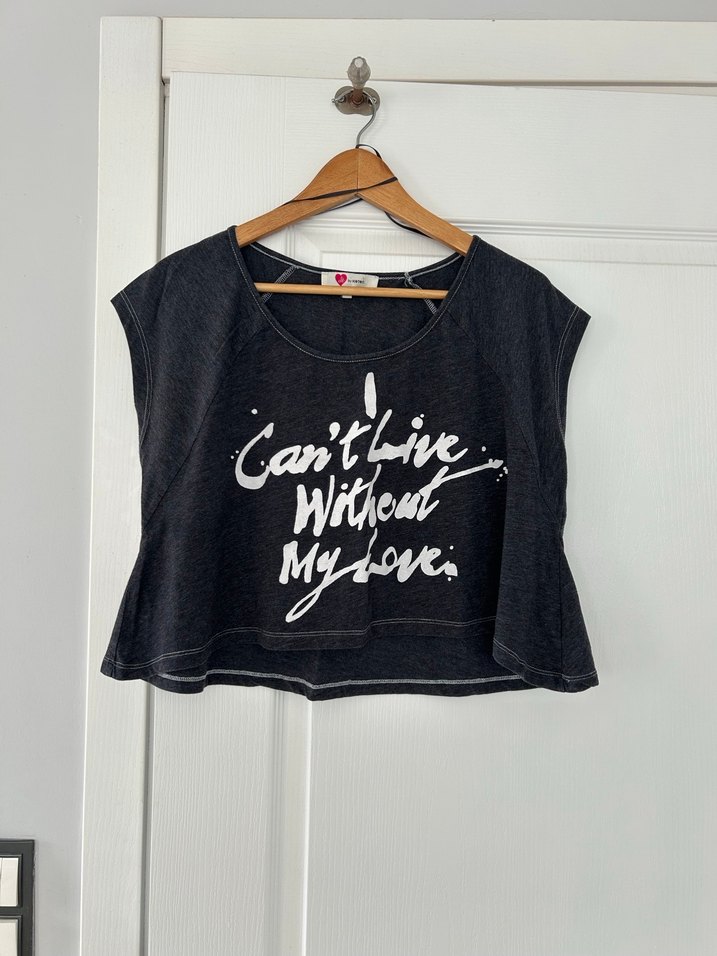 Koton Siyah Baskılı Kısa Kollu Crop Tişört