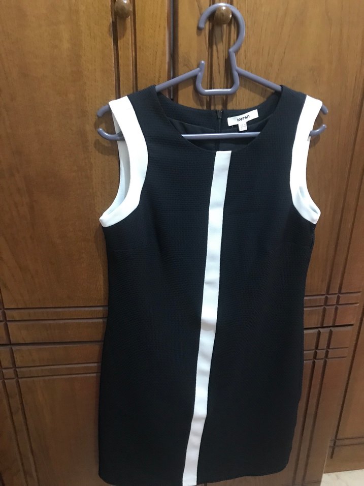 Koton Siyah Beyaz Kolsuz Kalem Elbise