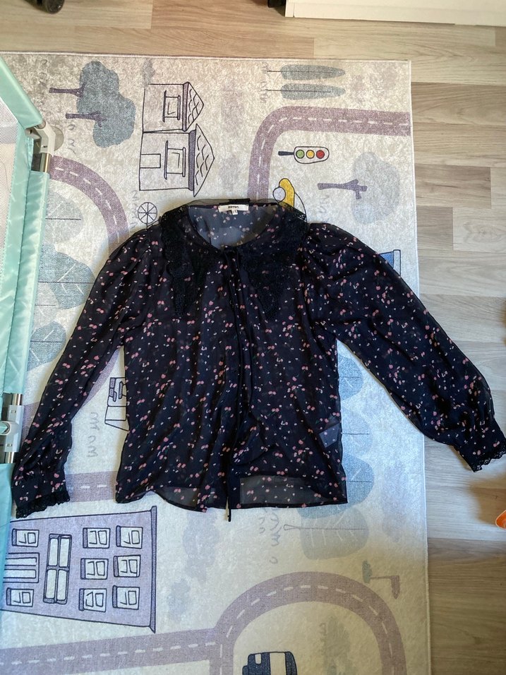 Koton siyah çiçekli tül gömlek