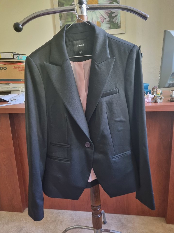 Koton Siyah Kadın Düğmeli Ofis Blazeri