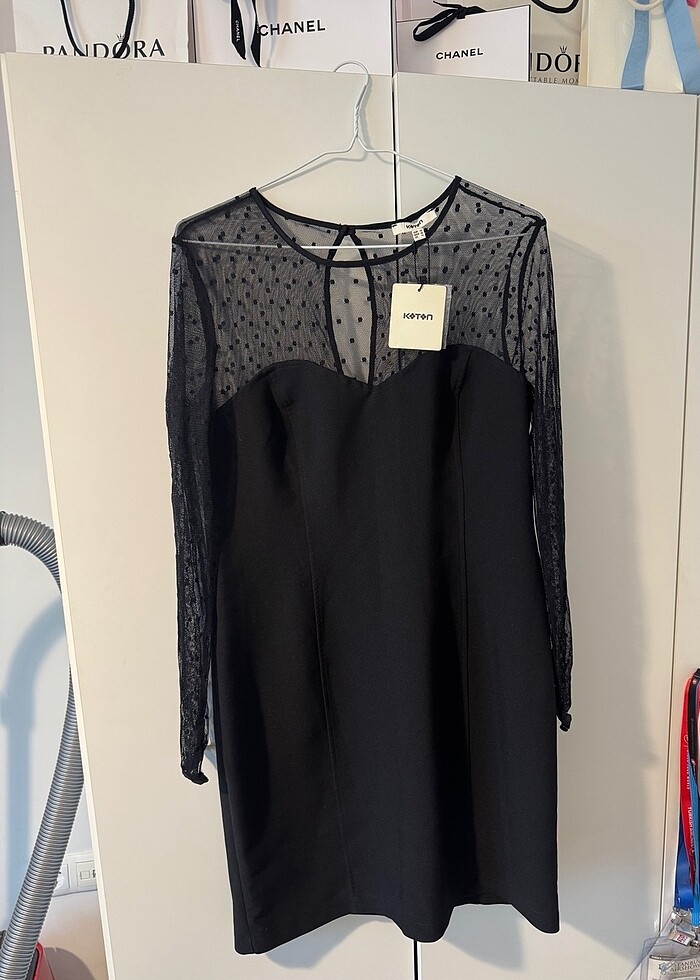 Koton siyah yarı tüllü elbise,etiketlidir,hiç giyilmedi ve sorunsuzdur