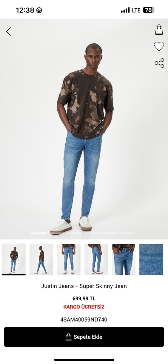 Sayılı giyildi. Defosu vs. hiçbir kusuru yok. Rengi fotoğraflarda ışıktan dolayı farklı çıkmış sizi yanıltmasın bir solması vs yok, esas rengi pantolonun arkasını çektiğim fotodaki renktir. Kalıbı skinny, bedeni 34-30dur. 182 cm- 90 kilo bir erkeğe oluyor. Başka erkek jeanleri de dolabımda mevcut onları da inceleyebilirsiniz