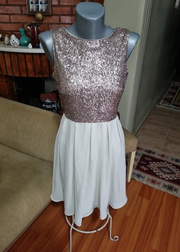 Hiç kullanılmadı 36 beden krem rengi gold pullar