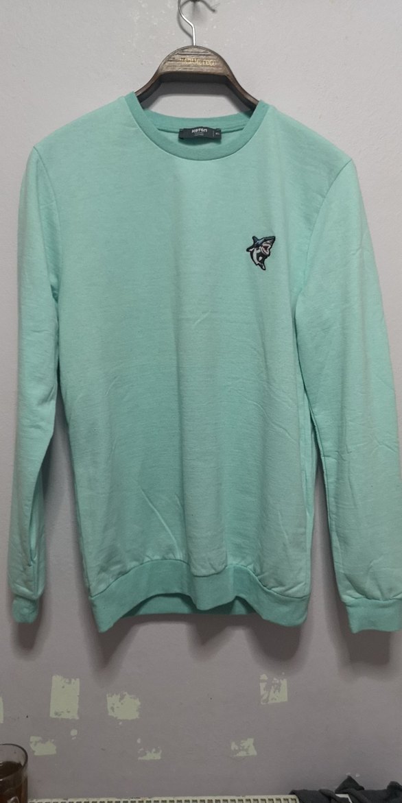 Turkuaz renkli, uzun kollu ve yuvarlak yakalı kadın sweatshirtü. Yumuşak ve sıcak kumaştan, rahat kesim ve küçük nakış detaylıdır. Günlük kullanıma uygundur. Xl beden boyu 74cm iki kol arası 54cm