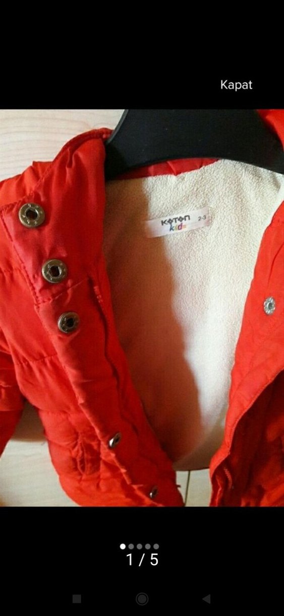 turuncu 2-3 yaş çocuk için kışlık kaban yumuşak iç astarlı ve kesimi vücuda oturan kışın soğuk günlerde kullanımı için uygundur.