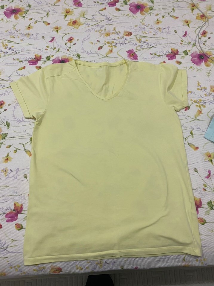 Koton unisex Sarı V Yaka Kısa Kollu Salaş Tişört