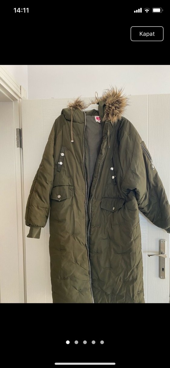 Koton Uzun Haki Kışlık Mont Kürklü Kapüşonlu