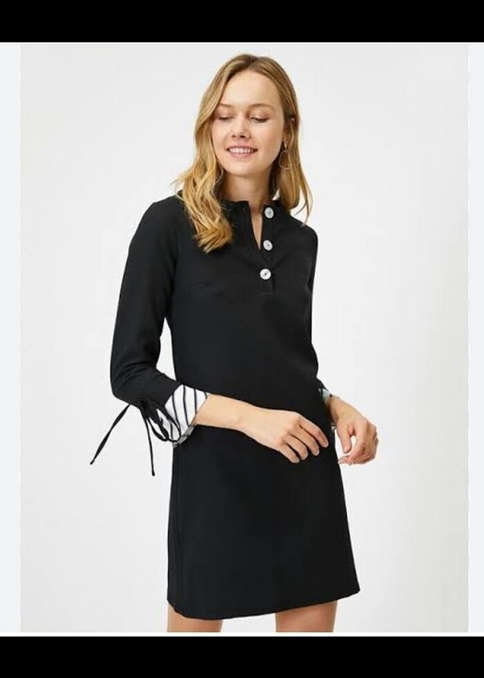 Koton uzun kollu bisiklet yaka fiyonk detaylı elbise.