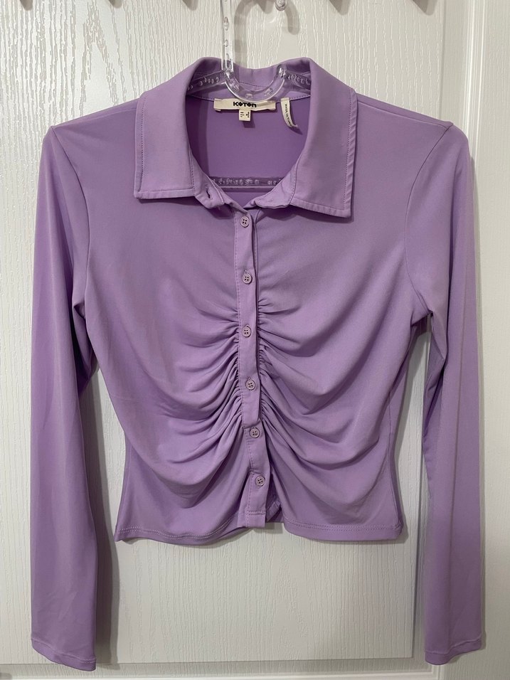 Lila renkli bu şık büzgülü gömlek S bedenindedir. Ürünün herhangi bir defosu yoktur, bedeni uymadığı için satmaktayım. İncelemek isterseniz Koton linkini ekliyorum: https://www.koton.com/uzun-kollu-buzgulu-gomlek-lila-1152338-1/