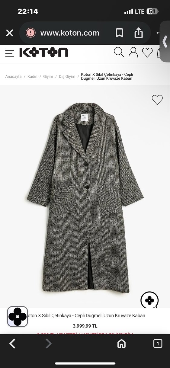Koton uzun kruvaze kaban, düğmeli ve cepli tasarıma sahiptir. Hiçbir yırtığı söküğü lekesi yoktur. Kolay kombinlenir, İyi durumdadır. Çok fazla kabanım montum olduğu için satıyorum.
