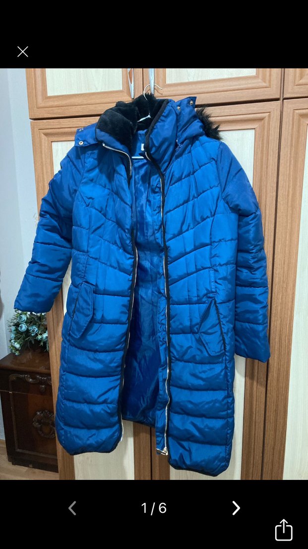 Koton Uzun mavi Fermuarlı Kadın Kış Montu