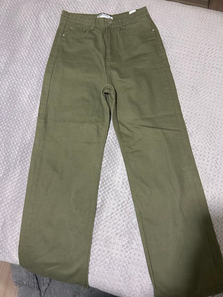 Kadınlar için haki renkli, normal kesim ve midi boyda sentetik kumaştan yapılmış pantolon. Günlük kullanıma uygun, zahmetsiz şıklık sunar.