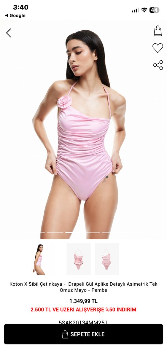 Drapeli ve gül aplike detaylı, tek omuzlu, mini boy, pembe renkli, vücuda oturan mayo. Parti için modern ve rahat bir şıklık sunar. Sadece bir kere denendi kücük geldiği icin satıyorum