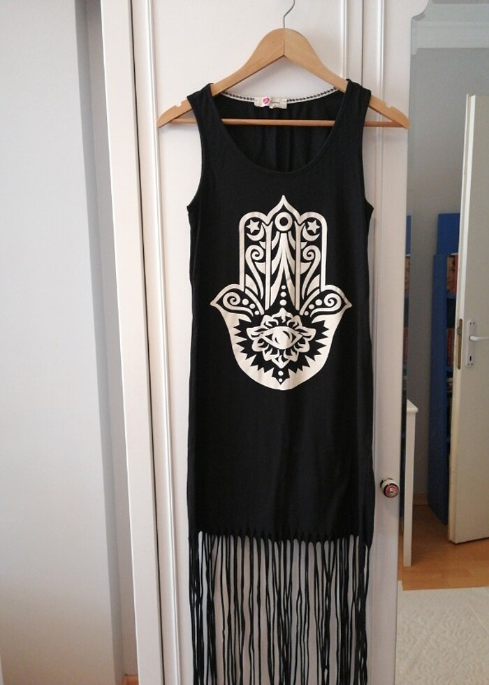 2 kez giyilmiştir. Hiç bir deformasyonu yoktur. Üstte çok şık duruyor. Özellikle yazlıkta ve tatilde üstünüzden çıkartmayacağınız bir elbise. Boy püskül başlangıç kısmına kadar olan bölüm 82 cm komple Boy 1.50 cm